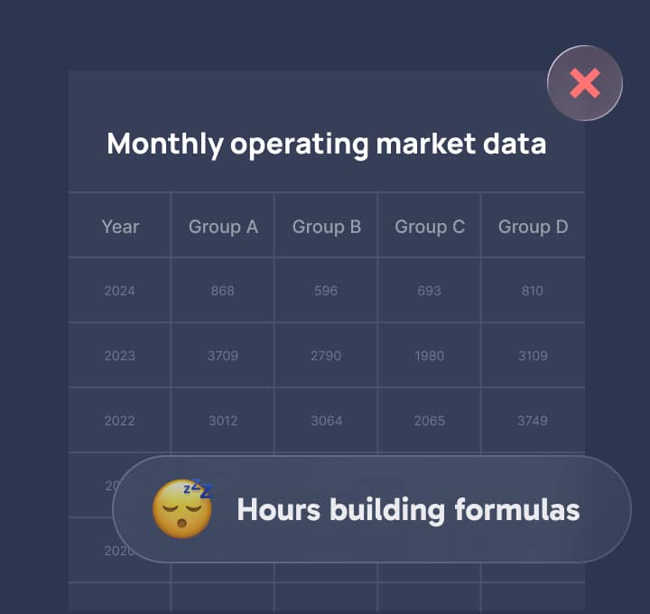 手动排序。从零开始创建图表。跨工作表交叉引用。把数小时浪费在试算表上。